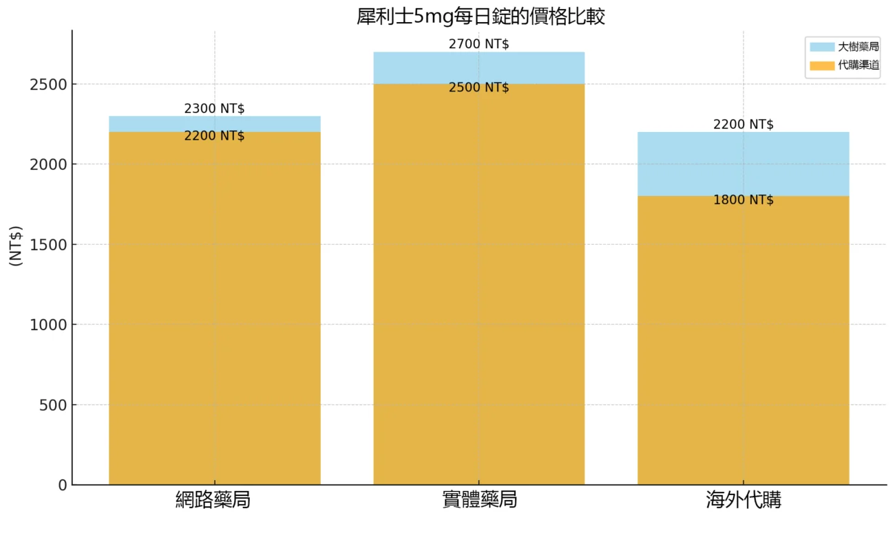 • 實體藥局:價格通常會稍高於網路藥局,大約在 NT$1700 至 NT$2000 之間,購買時需出示處方箋。