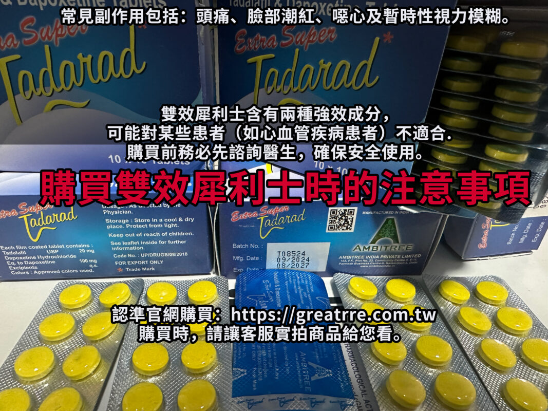 - 雙效犀利士含有兩種強效成分,可能對某些患者(如心血管疾病患者)不適合。購買前務必先諮詢醫生,確保安全使用。