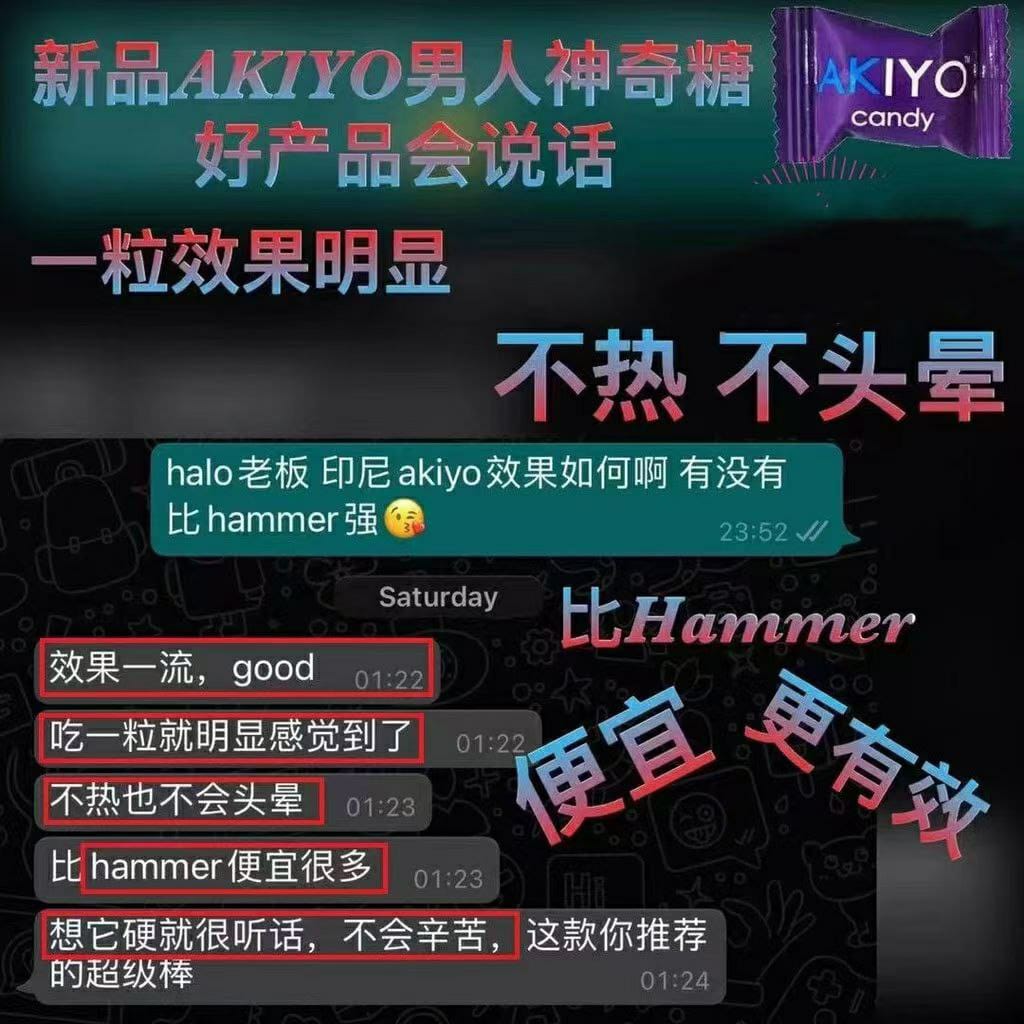 紫糖Akiyo汗馬糖是來自印尼原裝進口的高效精力補充糖,廣受亞洲男性的青睞。作為一款天然草本保健食品,每次只需服用一顆,其強勁的效果可持續3至7天。紫糖Akiyo汗馬糖由純天然成分製成,對身體無任何副作用,適合忙碌的現代男性用來提升精力、改善性功能及性慾。它在亞洲市場上極受歡迎,成為男性保健的優質選擇。