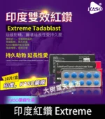 印度紅鑽 Extreme Tadablast 是由印度KASO藥廠生產的一款專門為男性設計的雙效產品。這款藥物結合了他達拉非(Tadalafil)和達泊西汀(Dapoxetine)兩大活性成分,不僅能夠幫助男性解決勃起功能障礙(ED),還能有效延緩射精,解決早洩(PE)問題。這款產品的設計旨在讓男性在每次性愛中都能表現得更加持久與堅挺,重拾自信與伴侶的滿意。