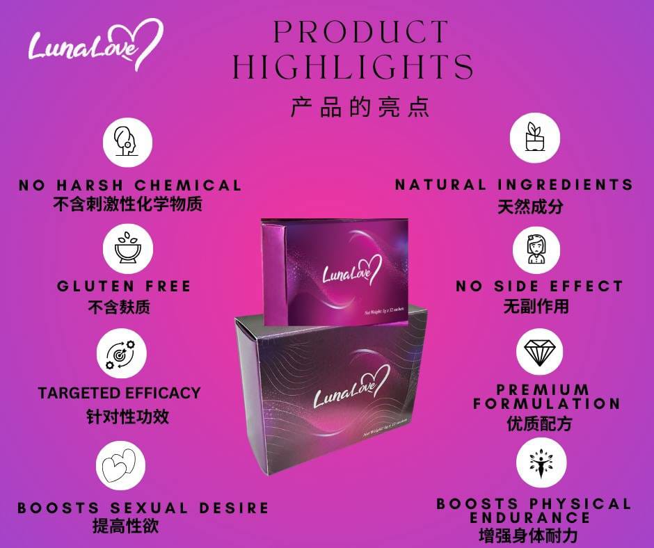 - 提升性趣:Lunalove 女用B糖採用科學配方,融合天然成分,有助於激發女性性欲,讓每次親密時光更加愉悅。