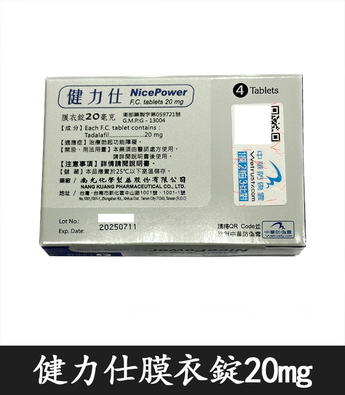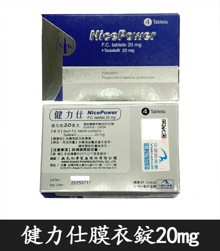 商品說明:健力仕 NicePower 20mg 犀利士學名藥