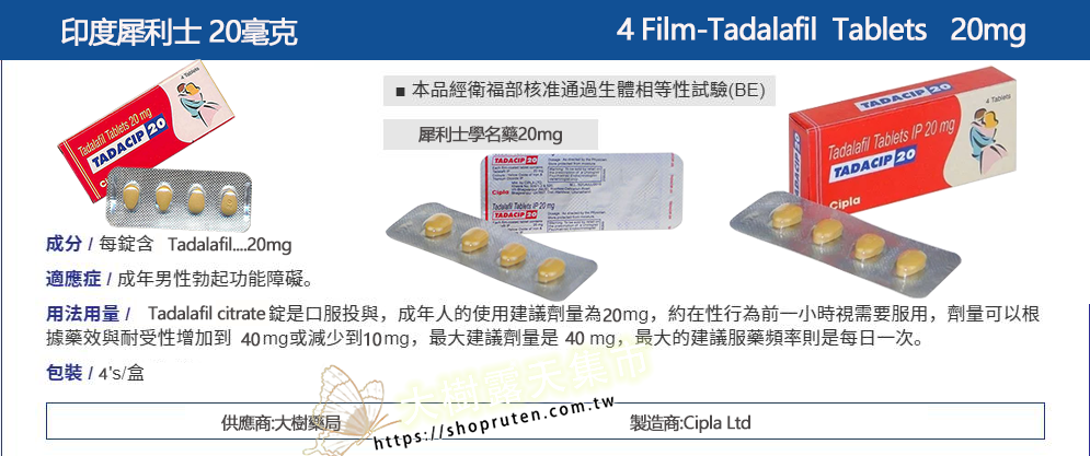 印度犀利士 Tadacip 20mg|犀利士學名藥 單效助勃-大樹精選