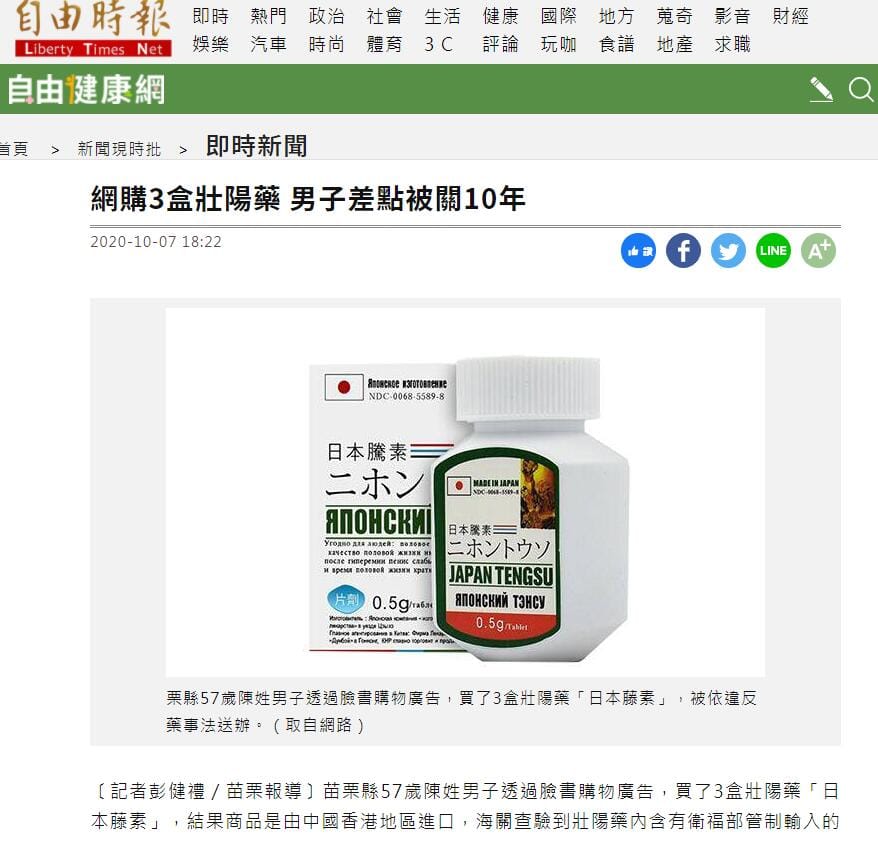 還有的患者朋友買到大陸產的偽藥藤素,就發生在新北市,假藤素從大陸或香港郵寄到台灣,被台灣海關扣下。法院以未經許可擅自輸入罪責將新北男士起訴。這位被起訴的朋友找到我們大樹藥局,由我們大樹藥局出面並且請代理律師才幫他把這件事情擺平。可見買偽藥的危害可不值是花冤枉錢那麼簡單。。