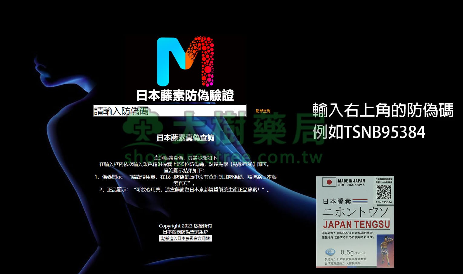 - 查驗防偽碼 防偽碼在官網右上角藤素真偽查詢系統進入。