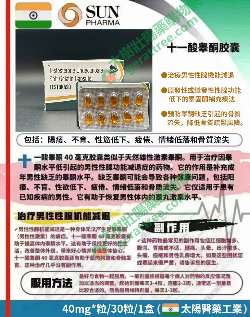 - 劑量:十一酸睪丸酮40毫克/粒。