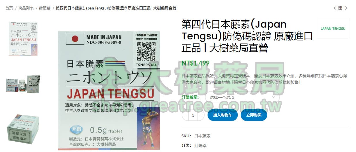 日本藤素(JAPAN TENGSU)是日本京都資賀製藥出品的一款保健品,能夠治療性功能障礙,延長性愛時間,長期用藥可達到增大陰莖的效果!成分百分百的動植物萃取,它的成分為:赤根草、雄鹿鞭、澱粉等。日本藤素以其無副作用的特地迅速成為壯陽藥市場中的寵兒!但也有部分用戶反映“服用日本藤素無效,反映日本藤素沒用這一問題”,今日由大樹藥局gerattree.com)為大家詳細解答!
