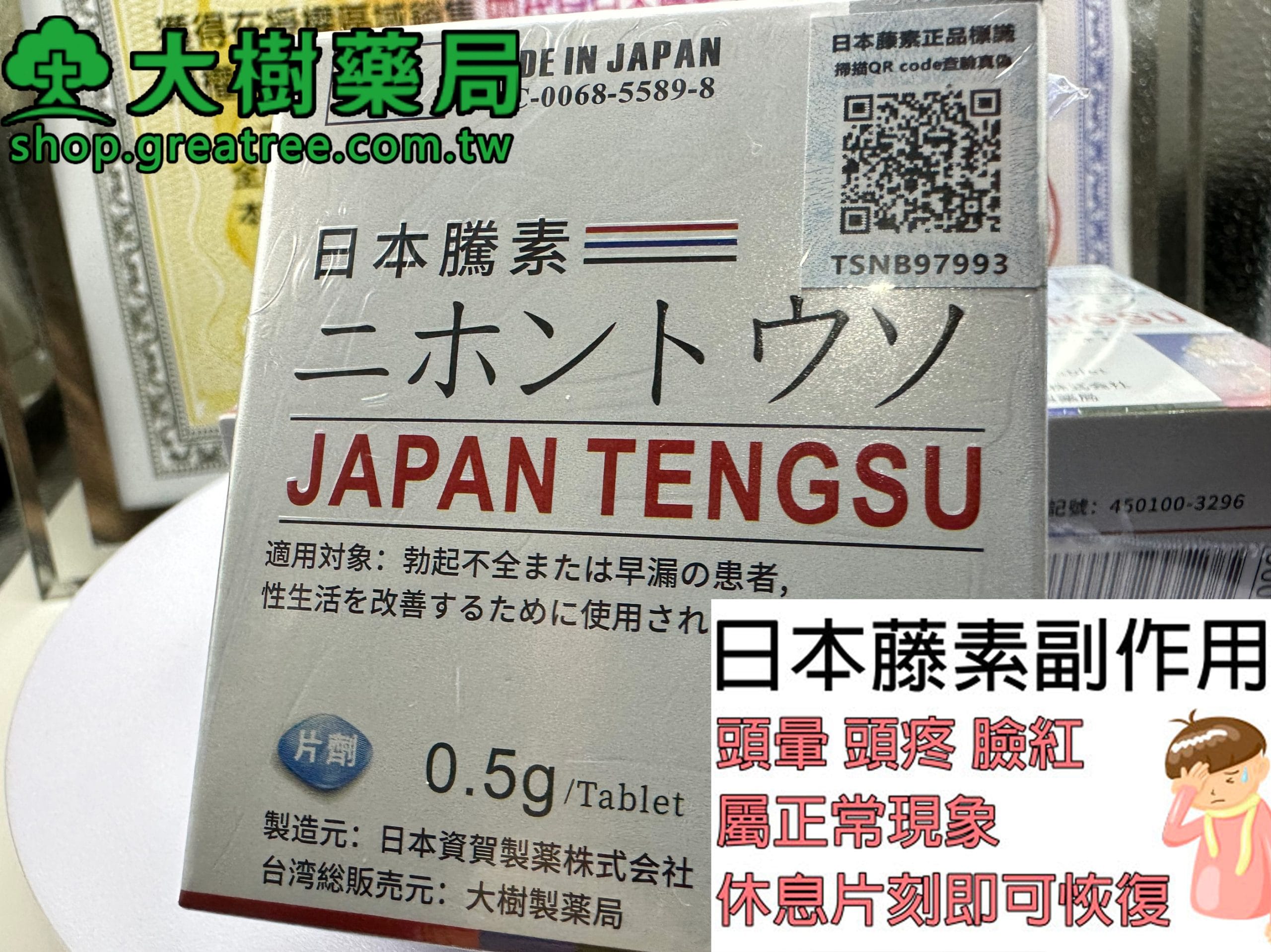 日本藤素是日本京都資賀製藥生產的純植物萃取性壯陽藥,主要成分包括海洋生物提取物、人參、枸杞、鎖陽、海馬等。該藥物符合中藥物配伍要求,具有陰陽調和,滋陰壯陽,補腎養精,調節內分泌,益氣補血,抗疲勞,強筋壯骨,暖腎安神,填精補髓,保護前列腺,提高前列腺的功能,防止前列腺增生,增強記憶力,調節神經衰弱,溫裏益火,健脾補中,甯心安神,固本穩基,增強免疫力和良好的康複保健效用。但服用藤素同樣會產生副作用,虽然藤素对多数患者高效且安全,但也有許多民眾在用藥後會有副作用產生的情況。